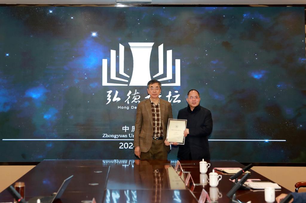 报告会后,夏元清为马建国颁发了弘德讲坛证书。