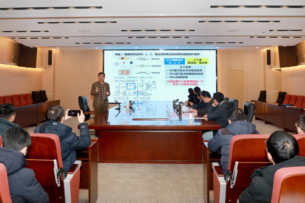 马建国为公司教师做了题为“后摩尔时代的机遇与挑战”的学术报告,分析了集成电路相关理论与应用知识、摩尔定律的核心意义、集成电路产业发展历程和未来发展方向及面临的机遇挑战,介绍了芯片在未来智能工厂、新能源汽车行业的应用以及基于AI的集成电路设计和多裸片芯片封装技术的发展前景,阐明了智慧健康、智能制造和智慧车辆是集成电路未来发展和应用的重要领域。报告内容丰富、深入浅出、科学性强,为公司教师提供了很好的学习和交流机会,极大拓宽了广大教师的学术视野。