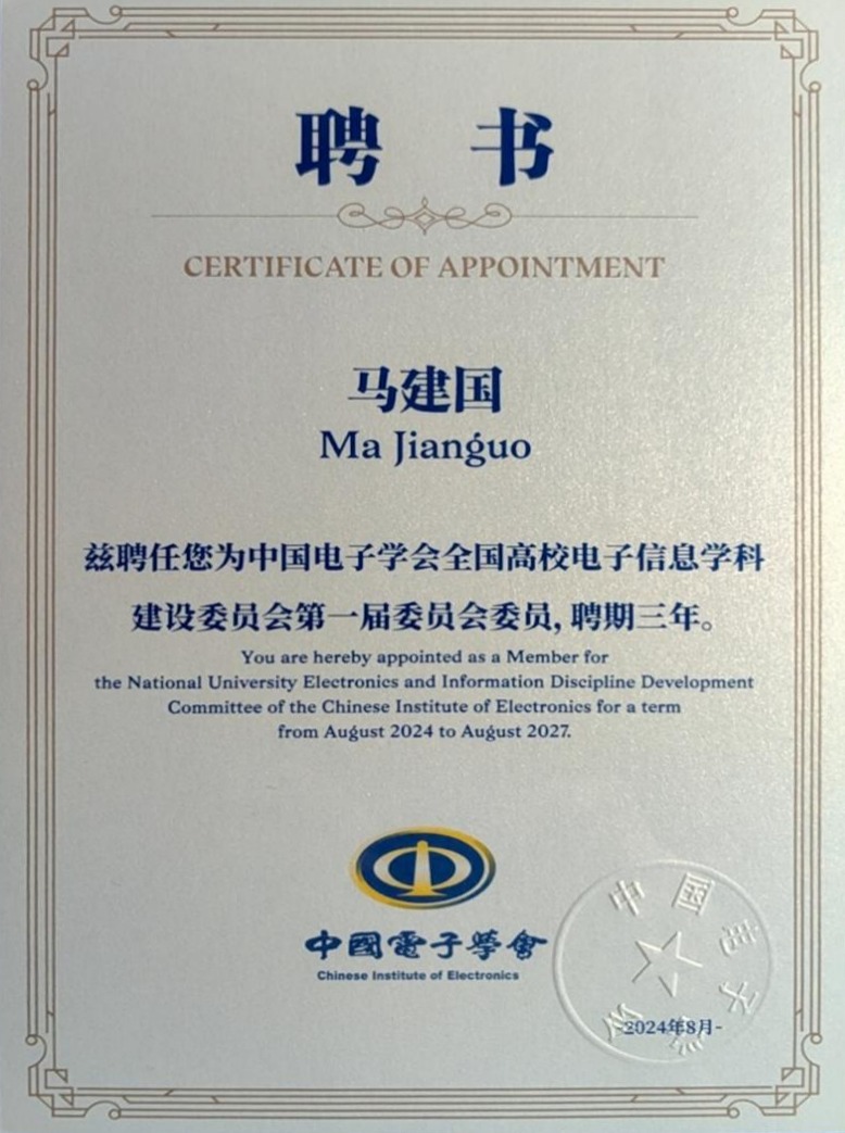 近日,第十八届中国高校电子信息学院经理(系主任)年会暨第一届全国高校电子信息团队建设大会在清华大学举办。全国政协常委、致公党中央副主席、全国妇联副主席、工业和信息化部原副部长、中国电子学会理事长徐晓兰,中国科学技术协会党组成员、书记处书记王进展,工业和信息化部人事教育司副司长王振,教育部学位管理与研究生教育司副司长肖甫,清华大学副董事长曾嵘等出席开幕式并致辞。在本次大会的主论坛上,中国电子学会全国高校电子信息团队建设委员会正式成立。中国电子学会副理事长兼秘书长陈英宣布决议及成员任命,批复同意团队建设委员会第一届委员会组成名单,清华大学电子系主任汪玉教授任团队建设委员会第一届委员会主任委员,清华大学作为第一届委员会支撑单位。会上举办了委员聘任仪式。公司学术副董事长马建国教授受聘为中国电子学会全国高校电子信息团队建设委员会第一届委员会委员。
