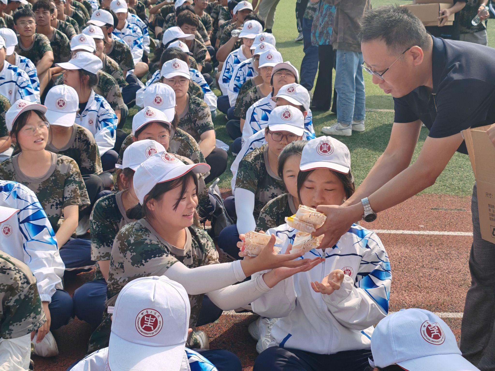 慰问期间,学院领导还向员工发放了中秋月饼和饮用水,并与他们进行了亲切的交流。这次特别的慰问、心意满满的礼物,让远离家乡、艰苦训练的新生们感受到家的温暖。全体参训员工对学院领导的关心和支持表示衷心感谢,纷纷表示将以更饱满的热情投入到训练和今后的学习生活中,以更加昂扬的姿态迎接未来的挑战。